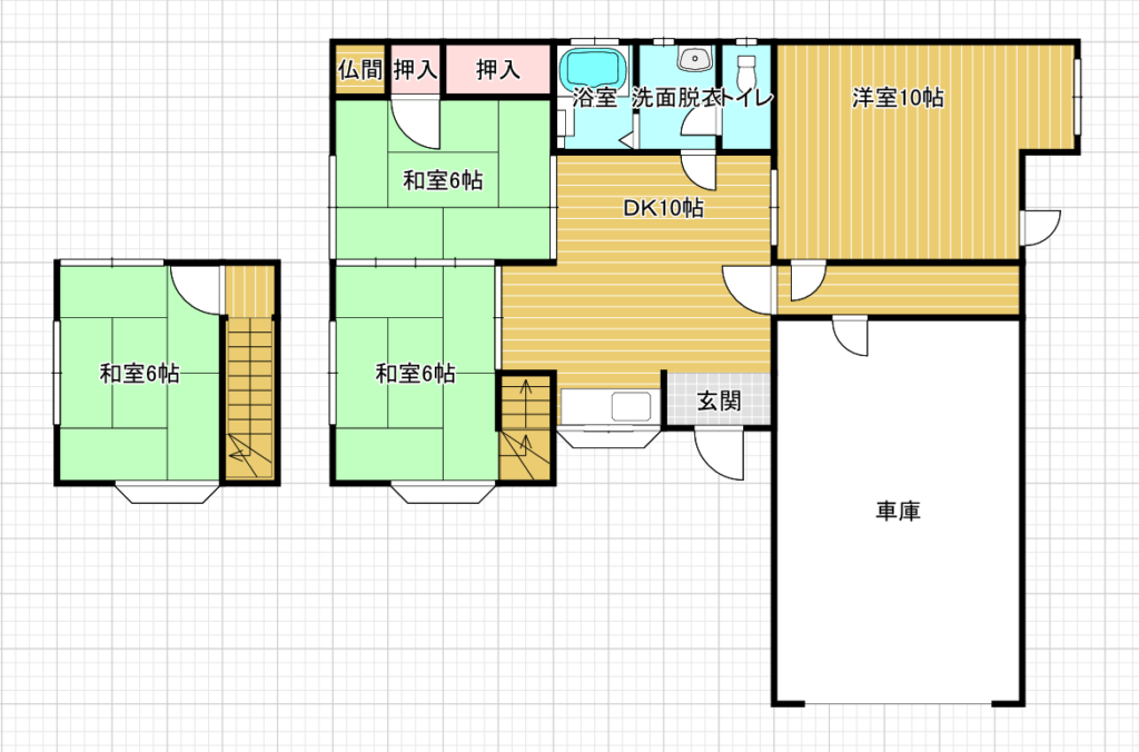 間取内容 DK 10畳 1階  和室 6畳 1階  和室 6畳 1階  洋室 10畳 1階  和室 6畳 2階